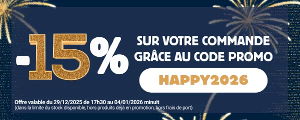 -15% sur votre commande avec le code : HAPPY2026 (du 29/12/2025 à 17h30 au 04/01/2026 23h59, hors produits déjà remisé et frais de port)
