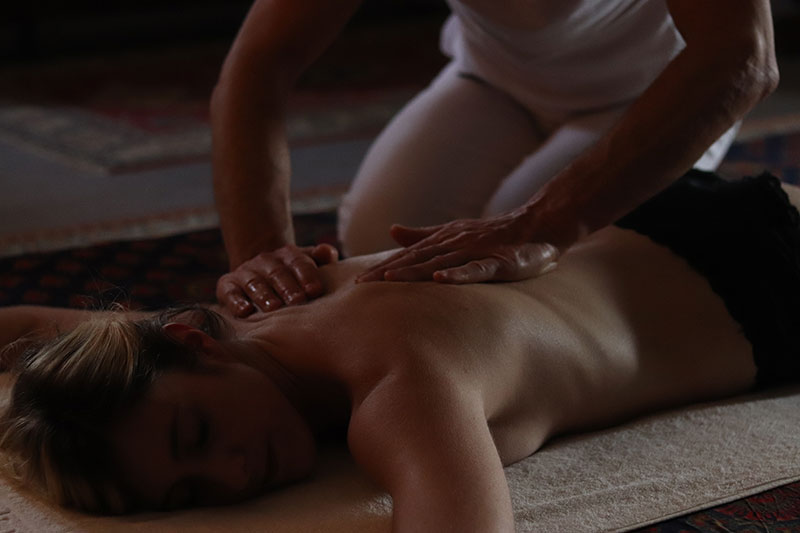 - Le temps du massage : gestes fluides, longs, continus, souvent avec une huile qui favorise la glisse et l’unité du mouvement.