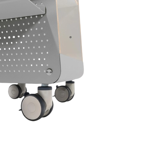 Ses 4 roues pivotantes à 360°, dont 2 avec freins de sécurité, assurent des déplacements fluides et un maintien stable, même dans les zones étroites. La poignée ajustable, à l’avant ou à l’arrière, facilite la prise en main et le transport du chariot d’un poste à l’autre.