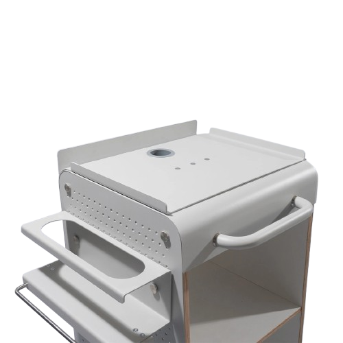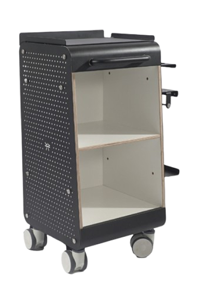 Pensé pour accueillir tous vos équipements et accessoires, le chariot Häp intègre une gestion intelligente des câbles et des plateaux latéraux avec panneaux métalliques pour un rangement organisé et sécurisé. Tout est à portée de main, avec une circulation simplifiée et un encombrement réduit.