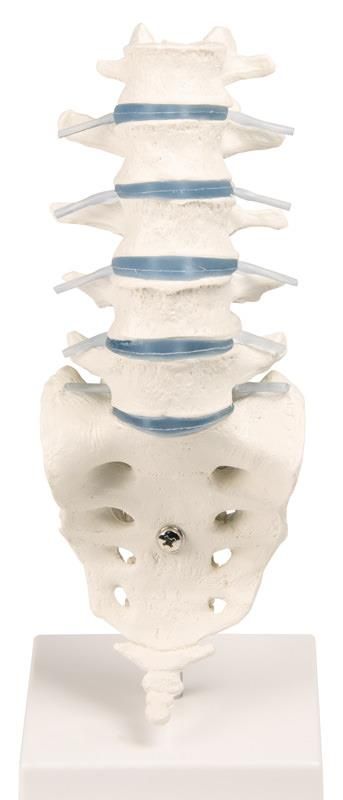L1 à L5 et le sacrum sont montés de manière flexible. La colonne vertébrale lombaire Erler Zimmer présente la moelle épinière et nerfs rachidiens émergents. Tous les mouvements dans la zone lombaire peut être représentés.