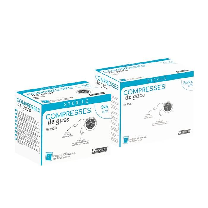 | Référence | Compresses-de-gaze-tissées-stériles-Euromedis-17-Fils |