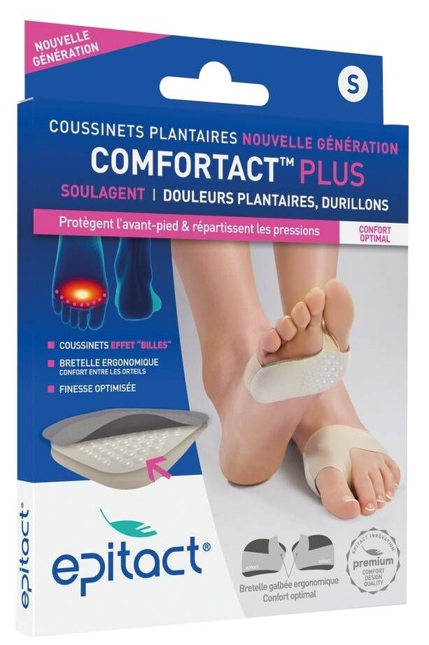 Conçus pour apporter un soulagement immédiat des douleurs sous l’avant-pied, les coussinets plantaires Epitact Comfortact Plus améliorent significativement le confort lors de la marche et de la station debout prolongée.