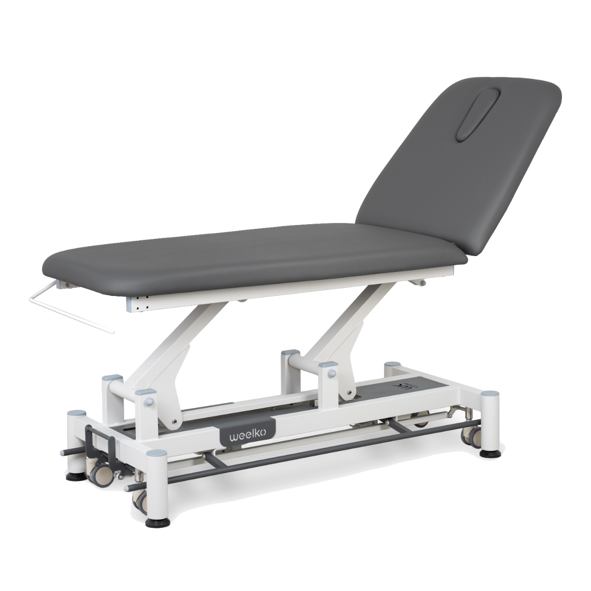 Le divan d'examen électrique Weelko est conçu pour répondre aux exigences des soins de physiothérapie et des traitements thérapeutiques. Doté d’une structure en 2 sections, il intègre un moteur permettant d’ajuster la hauteur avec précision grâce à une commande périmétrique. La hauteur se règle de 43 à 86 cm, offrant une adaptation simple aux différentes positions de travail.
