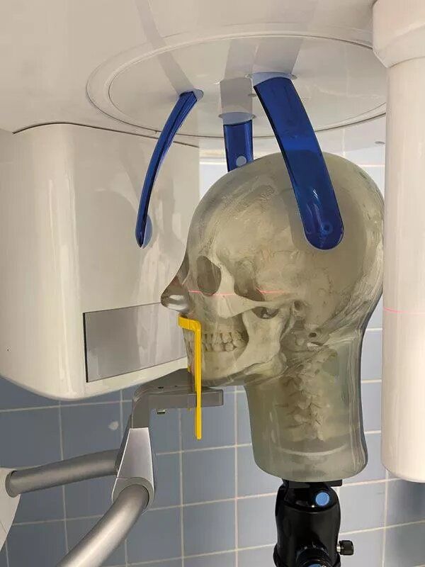 Sa conception intègre une mâchoire légèrement ouverte, facilitant la réalisation de clichés panoramiques dentaires de haute précision ainsi que le réglage et la calibration des équipements d’imagerie. L’ajout des vertèbres cervicales renforce le réalisme anatomique et permet une représentation plus complète des structures crânio-cervicales.