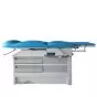 Le fauteuil Promotal Kompact propose également des rangements astucieux pour vous aider à rester organisé. Il comprend quatre tiroirs pratiques, deux latéraux coulissants accessibles des deux côtés, ainsi que deux tiroirs frontaux pour avoir tous les outils nécessaires à portée de main. L’inclinaison de l’assise à 7° et les étriers intégrés escamotables permettent une grande flexibilité pour divers types d’examens, tandis que la marchepied escamotable assure un accès facile pour les patients à mobilité réduite.