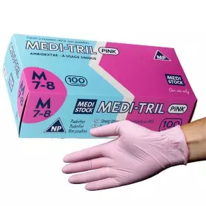 Référence | Gants-d-examen-nitrile-Medi-Tril-roses-non-poudrés-non-stériles |