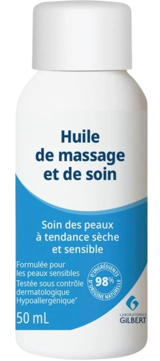 L’huile de massage et de soins Gilbert 50 ml est conçue pour répondre aux besoins des peaux sensibles et peut être utilisée dès l’âge de 3 ans. Polyvalente, elle convient aussi bien aux massages traditionnels qu’aux soins d’effleurage, tout en facilitant le suivi des zones de pression grâce à sa texture incolore, qui permet de repérer facilement l’apparition de rougeurs.