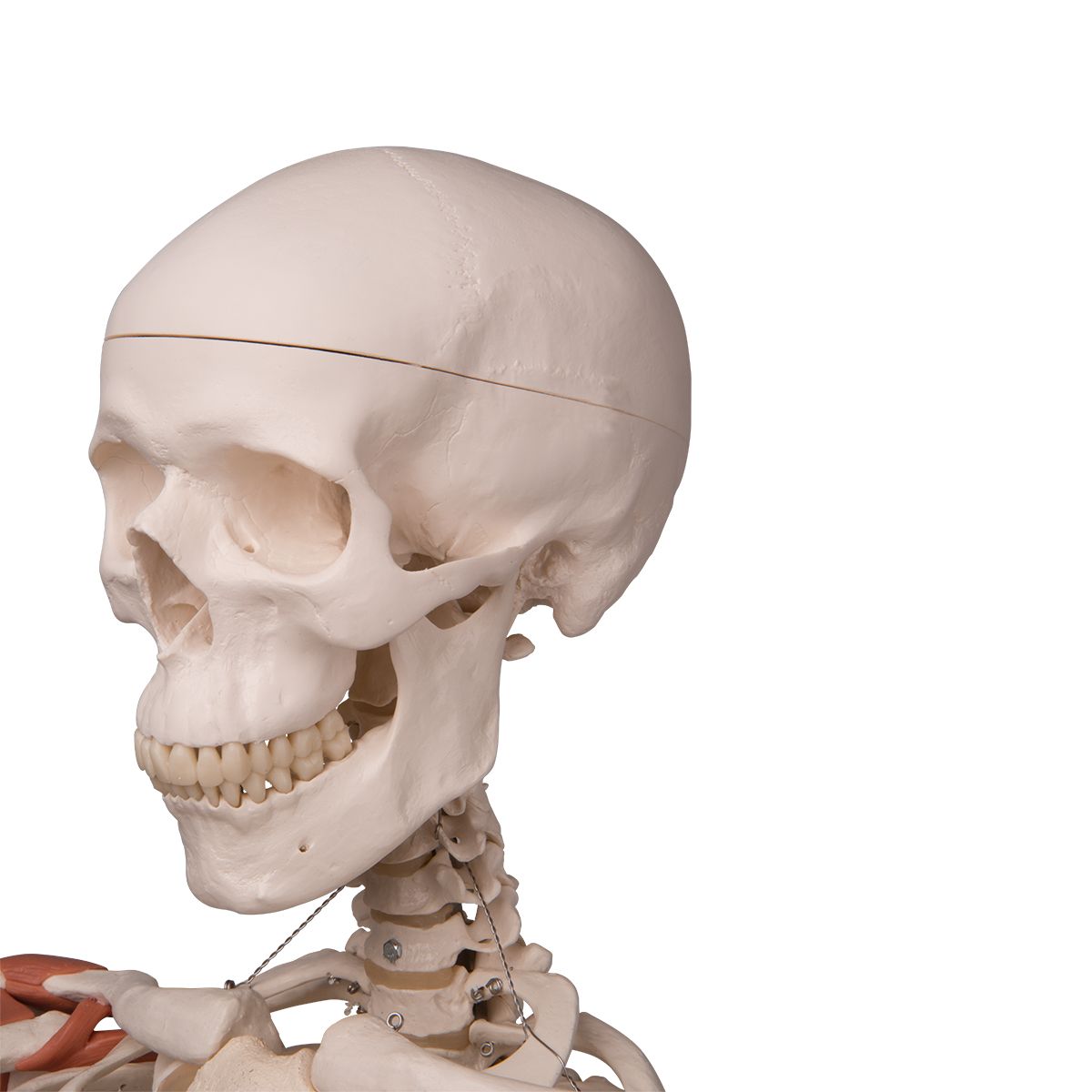 Le squelette Léo avec ligaments est fabriqué en matière plastique incassable et inaltérable avec un moulage naturel de qualité supérieure "Made in Germany" et un montage final à la main. Le poids de ses 200 os est proche de la réalité et ses membres sont faciles et rapides à assembler et à démonter.