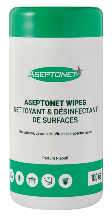 Les lingettes désinfectantes Aseptonet sans alcool sont la solution idéale pour les professionnels de Santé recherchant efficacité, praticité et sécurité. Conçues pour un usage quotidien, elles permettent de nettoyer et désinfecter efficacement toutes les surfaces dures non poreuses.