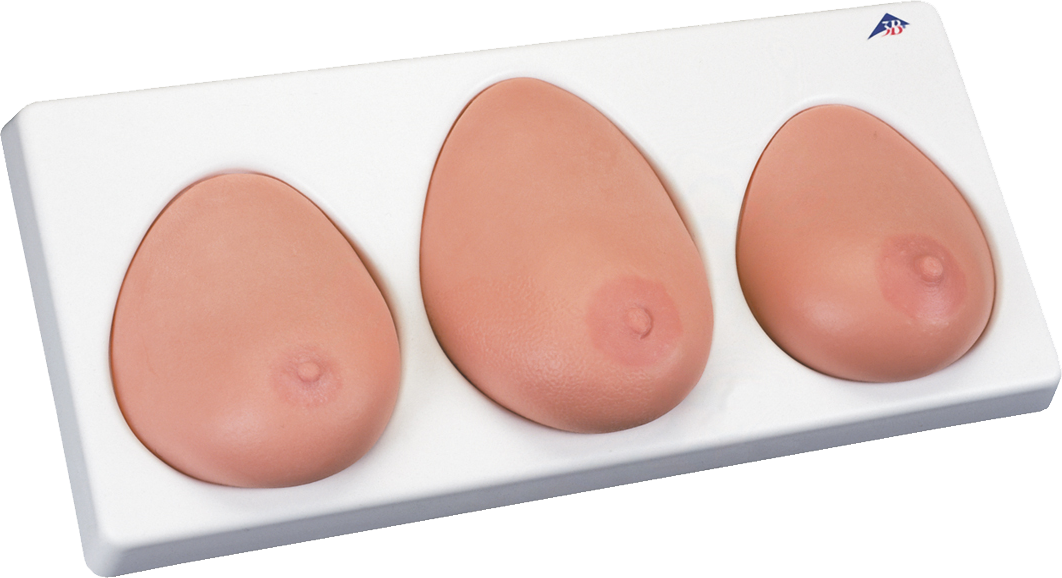 Moulages grandeur nature et extrêmement réalistes de trois seins féminins différents (tailles moyenne et grande) pour l'enseignement des techniques de dépistage et l'information et la prévention des patientes.