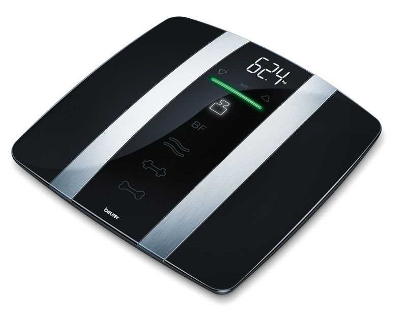 Description du Pèse-personne impédancemètre BF 620 - Nouveau - - Interprétation en couleurs des valeurs mesurées - Commande au pied confortable - Format XXL : 34 x 34 cm - Grand plateau de pesée aux formes ergonomiques - Simple et compréhensible : touches de sélection directe illuminées pour un affichage clair des informations souhaitées : poids, graisse et eau corporelles, masse musculaire, masse osseuse - Grand écran LED blanc - Taille des chiffres : 33 mm - Avec des électrodes en acier inoxydable brossé - Capacité de charge 180 kg - 5 niveaux d'activité - 10 mémoires utilisateurs - Affichage en cas de surcharge - Mise en service par effleurement