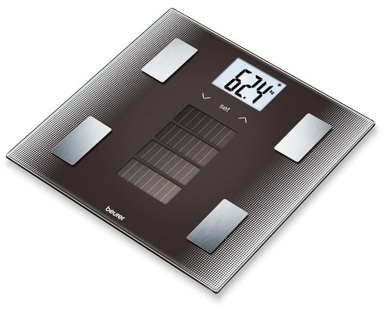 Ce Pèse-personne impédancemètre solaire Beurer BF 300 Solar est le tout premier pèse personne nouvelle génération et respectueux de l'environnement, fonctionnant exclusivement grâce à l'énergie solaire : il ne vous sera ainsi plus nécessaire d'acheter des piles, ainsi que de devoir les changer. A la fois adapté à la lumière du jour qu'à la lumière artificielle, cette balance novatrice est également adaptée au pièces plus sombres, dont l'intensité de lumière n'est pas inférieure à 60 Lux.