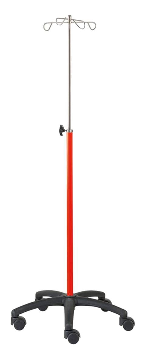 Disponible avec 2 ou 4 crochets, il permet de gérer facilement plusieurs perfusions simultanées, idéal pour les soins intensifs ou les traitements complexes. La base en ABS noir de 55 cm de diamètre assure une stabilité maximale, tandis que ses 5 roulettes pivotantes de 50 mm facilitent les déplacements rapides et sécurisés entre les chambres ou les services.