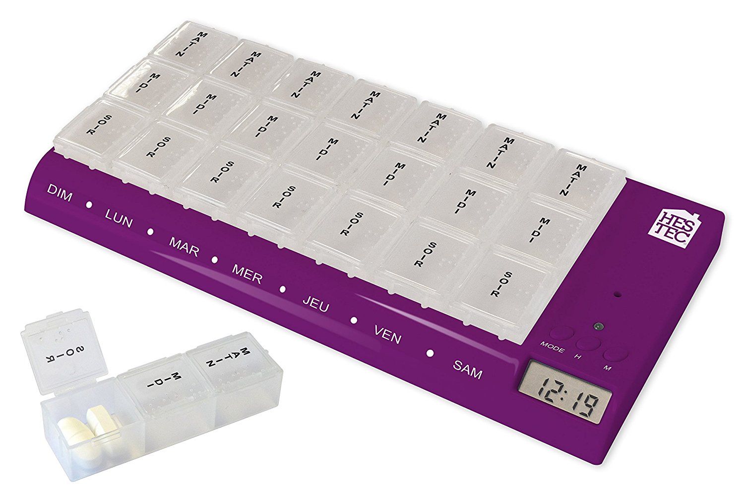 Ce pilulier alarme électronique proposé par Hestec pour éviter les risques d’oubli de prise de médicaments. L’appareil dispose de 3 compartiments à comprimés, et affiche l’heure et le nombre d’alarmes programmées. Ce pilulier 7 jours vous permet de programmer jusqu’à 5 alarmes quotidiennes lumineuses et sonores. C’est la solution idéale pour éviter le problème de l’oubli la prise de médicaments.