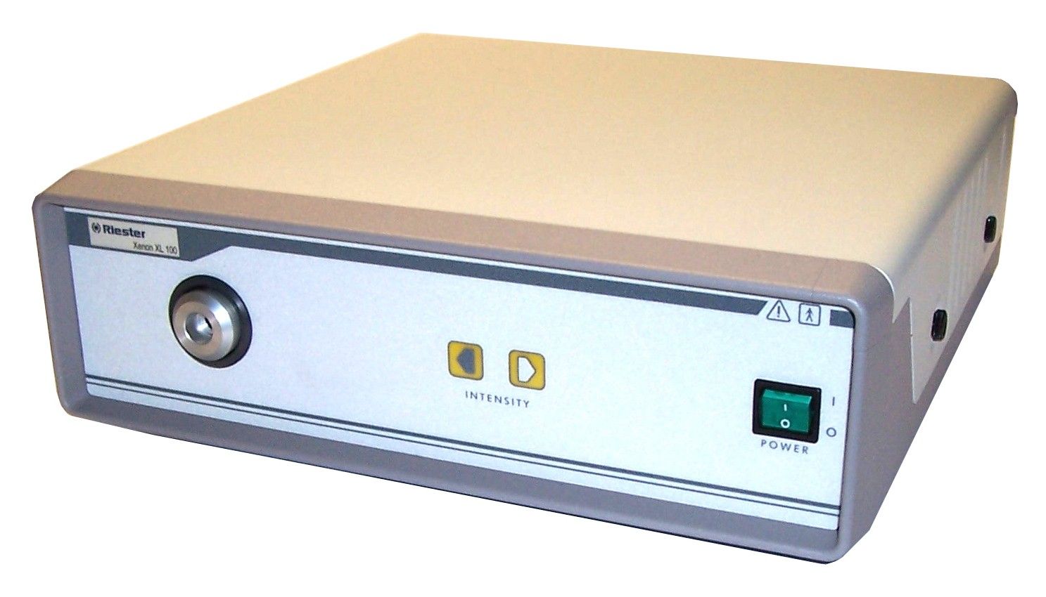 Source de lumière froide haute performance: crée des conditions similaires à celles du jour. Émissions sonores réduites, faible dégagement de chaleur. Dimensions: l 355 x h 110 x p 347 mm. Classe de protection BF. Poids: 9,5 kg. Prise de conducteur de lumière : type standard Storz, interchangeable. Lampe: 100 W au xénon, lampe à arc court avec réflecteur elliptique de lumière froide (longévité: environ 500 heures). Température de couleur: 5 600° K. Puissance consommée: 185 W.