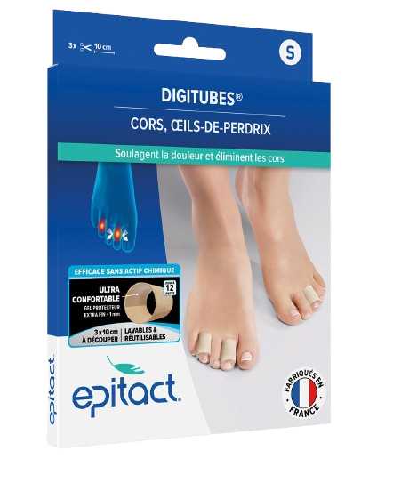 Protégez vos orteils avec Digitubes Epitact, des bandes en gel de silicone ultra-fines qui soulagent la pression et préviennent les callosités. Leur technologie brevetée agit directement sur les frottements et les points sensibles, réduisant cors dorsaux et œils-de-perdrix pour un confort durable.