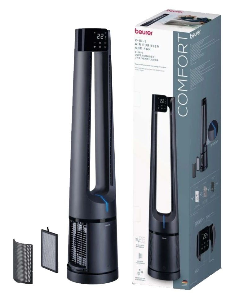 Alliez fraîcheur et air pur avec le LV 500 Pure Flow, rafraîchisseur et purificateur 2-en-1 pensé pour offrir un confort optimal toute l’année. Grâce à son système de filtration à 3 couches — préfiltre, HEPA H13 et charbon actif — il élimine efficacement poussières, pollen et odeurs, pour un environnement sain et agréable, idéal pour les personnes sensibles aux allergènes.