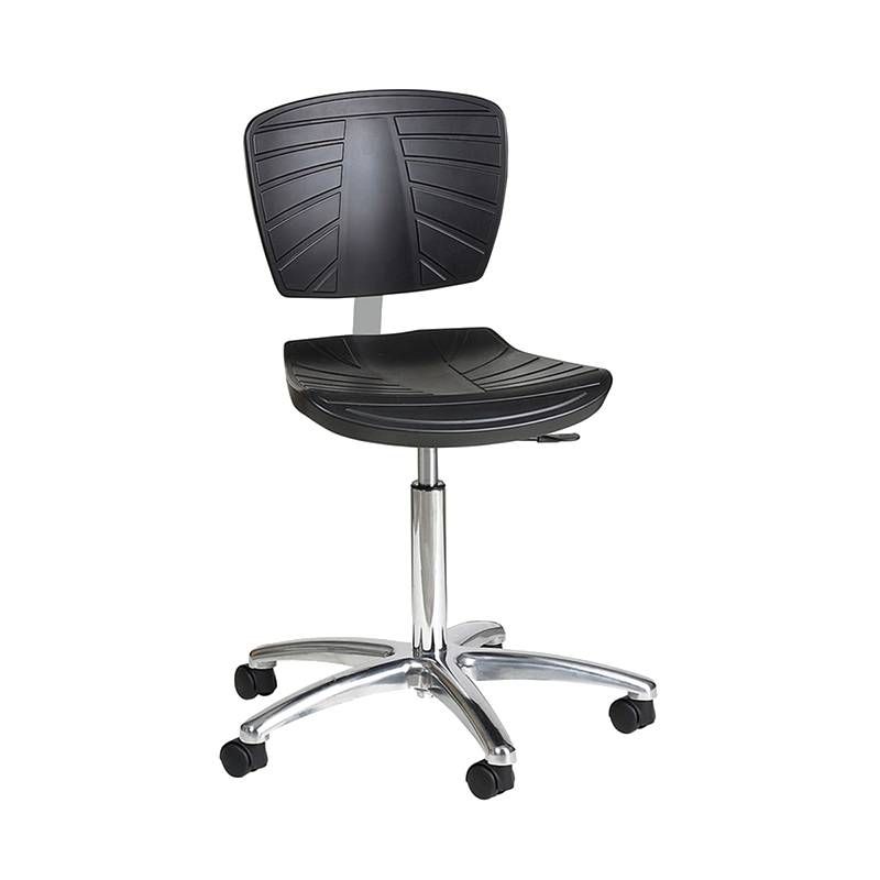 Le réglage en hauteur de 47,2 à 67,2 cm permet d’adapter facilement le siège à chaque poste de travail. Son piètement en aluminium poli à 5 branches apporte une excellente stabilité, même en conditions d’utilisation intensive, et supporte une charge maximale de 180 kg.