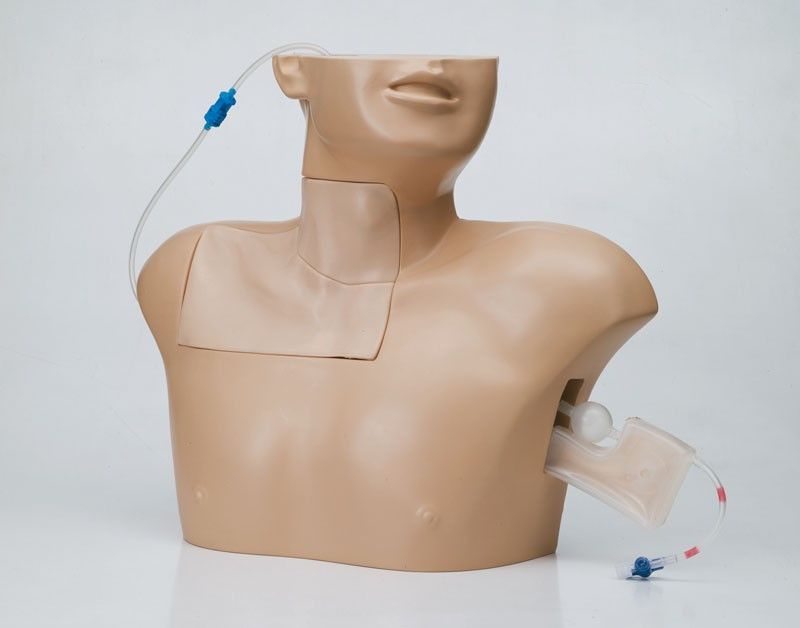 Ce dispositif a été spécialement fabriqué avec un matériau de revêtement sensitivement similaire à la réalité : souple et doux. Ce tissu peut supporter 150 mises en place de cathéter veineux centraux (CVC), en ne conservant aucune trace de l'exercice précédent.
