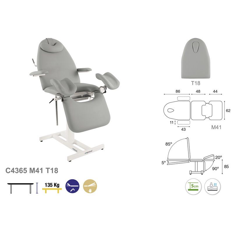 Caractéristiques techniques de la table de gynécologie fixe avec accoudoirs Ecopostural C4365M41: