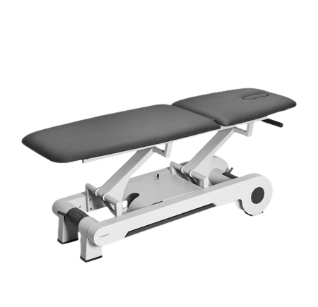 Le réglage électrique de la hauteur, fluide et silencieux, s’effectue de 56 à 92 cm grâce à un cadre périphérique intégré au châssis. Accessible sur tout le pourtour, ce système permet d’adapter rapidement la hauteur sans interrompre la séance. Les commandes au pied complètent l’ensemble pour des ajustements précis, favorisant une posture de travail naturelle et sans contrainte.
