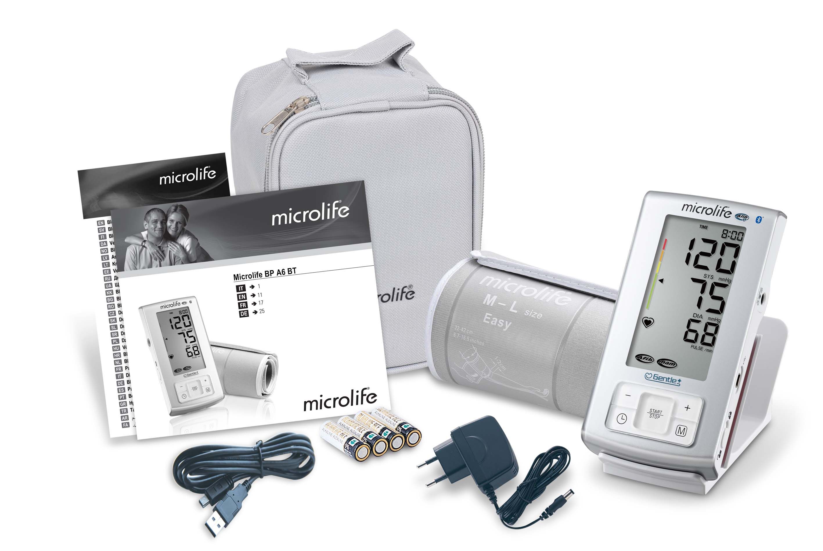 Ce tensiomètre automatique Microlife BP A6 avec Bluetooth dispose d’un indicateur détectant le mouvement du bras qui garantit une prise de tension de qualité. Veillez à ce que toutes les mesures soient prises sur le même bras.