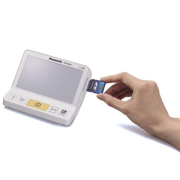 Tensiomètre Electronique au bras Diagnostec EWBU60 Panasonic- Ecran super géant (109 x 64 mm) soit 70cm²!-Fonction pendule - Indicateur de mise en mémoire, de pouls irrégulier, de pulsation cardiaque - Détecteur de mouvement - Brassard Simplyfit breveté - 2 x 270 mémoires - Lecteur de carte SD.