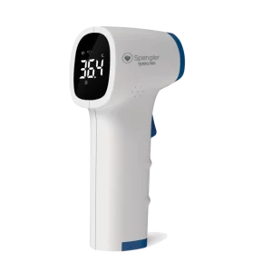 Découvrez le thermomètre infrarouge NO TOUCH de chez Mebby. Ce type de thermomètre mesure la température corporelle sans contact. Il n'est pas invasif. Ce thermomètre sans contact est idéal notamment pour prendre la température des enfants et des nourrissons. Il s'agit d'un thermomètre multifonctionnel, il vous donne la possibilité de mesurer la température corporelle, mais également la température des liquides et des objets. Vous avez la possibilité de choisir la modalité de prise de température.